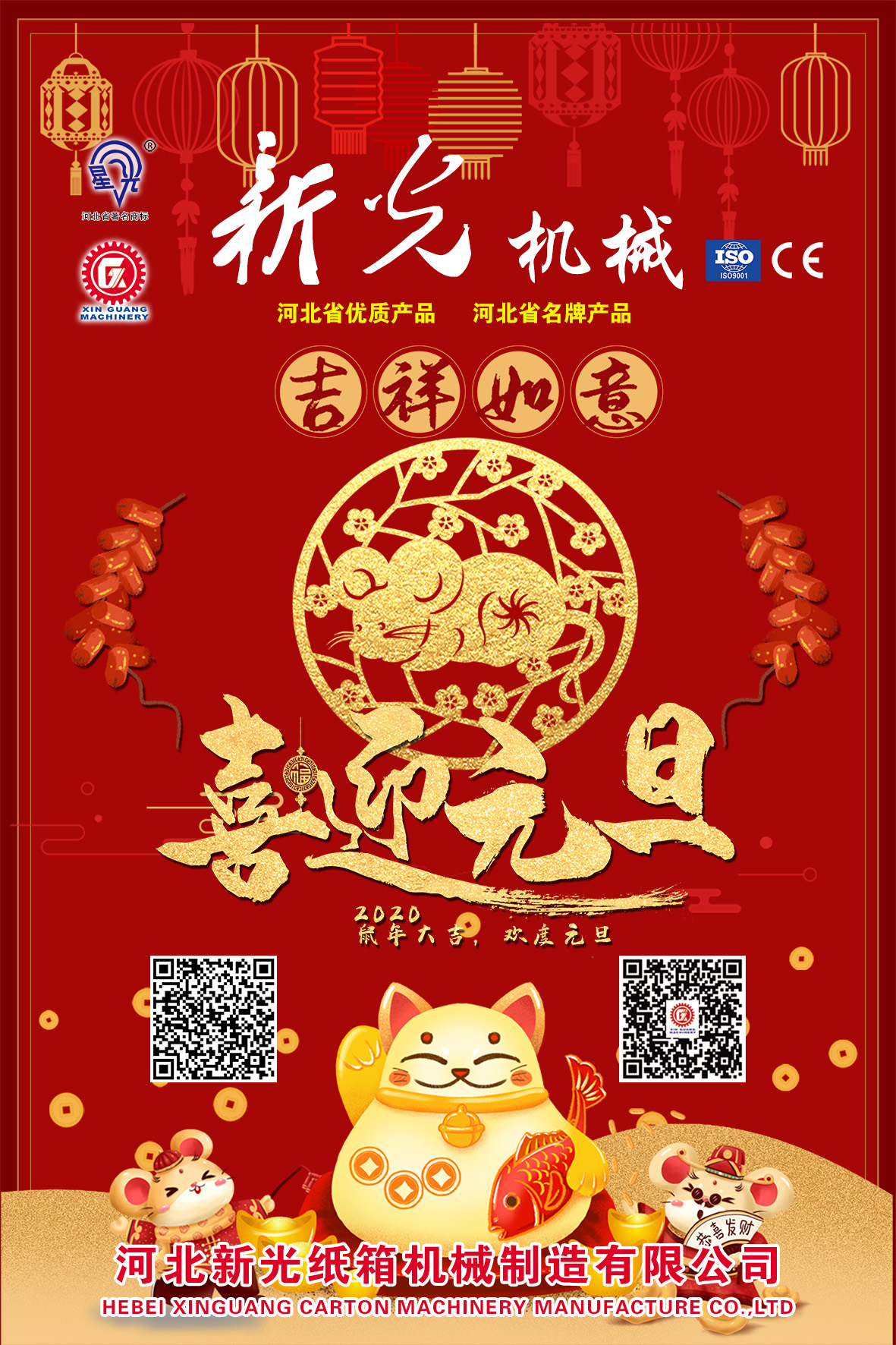 2020新的一年新的氣象,河北新光紙箱機(jī)械制造有限公司全體員工恭祝廣大客戶新年快樂(lè),生意興隆,財(cái)源廣進(jìn),恭喜發(fā)財(cái)。